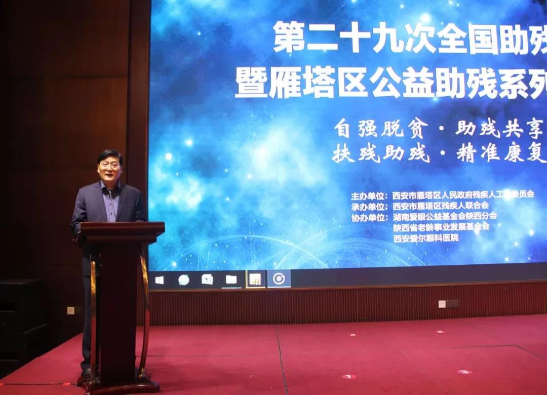 西安爱尔眼科医院ceo陈志永随后致辞,表示西安爱尔眼科医院作为我市眼科专科医院,有责任及义务承担起我市残疾人健康知识宣传和救助工作,帮助残疾眼疾患者重见光明。爱尔眼科将继续不忘初心、认真贯彻落实习近平总书记的重要讲话,在政府的全力支持下,做好眼健康公益事业的发展,助力推动残疾人康复事业,为共同构建和谐社会做出贡献。为健康中国战略,创建国家文明城市助力。实现让我市更多视力残疾人士享受到社会关爱,使所有的人,无论贫穷富裕,都享有眼健康的权利。